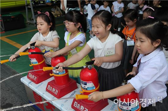 " 관내 유치원생 등 소방서 견학 간 꼬마소방관 체험"[아시아경제 노해섭 기자]광주광역시 남부소방서(서장 이성연)는 유치원 어린이들 소방서 견학 시 ‘꼬마소방관’ 프로그램을 운영하고 있다고 밝혔다.남부소방서 송하119안전센터는 유치원 등 미취학 어린이를 대상으로소방서 견학 시에 ‘꼬마 소방관’ 프로그램을 운영하고 있다. 흥미와 재미를 바탕으로 운영되는 이 교육은 어린이들 꼬마소방복을 입고 물소화기 체험, 소방차량 및 구급차량 탑승체험 등을 함으로써 놀면서 안전에 대해 익힐 수 있도록 하는데 그 취지가 있다.