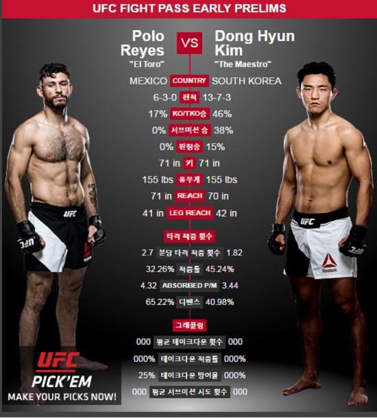UFC199 폴로 레예스 김동현 / 사진=UFC홈페이지 캡처