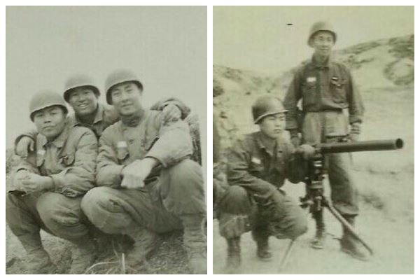 더불어민주당이 6월 호국영령의 달을 맞아 공개한 김종인 비대위 대표의 군시절 사진. 김 대표는 파주 임진강 대대(당시 육군 20사단)에서 1960~1961년 복무했다. 사진 왼쪽이 김 대표.<br />