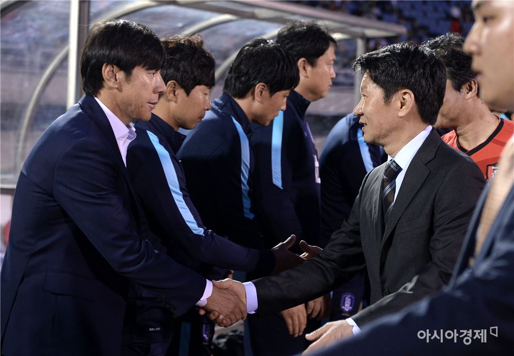 [부천=아시아경제 김현민 기자] 신태용 감독이 이끄는 23세 이하(U-23) 올림픽 축구대표팀 6일 부천종합운동장에서 덴마크와 4개국 친선대회 마지막 경기를 했다. 경기에 앞서 정몽규 대한축구협회장이 대표팀을 격려하고 있다.김현민 기자 kimhyun81@asiae.co.kr<ⓒ세계를 보는 창 경제를 보는 눈, 아시아경제(www.asiae.co.kr) 무단전재 배포금지>