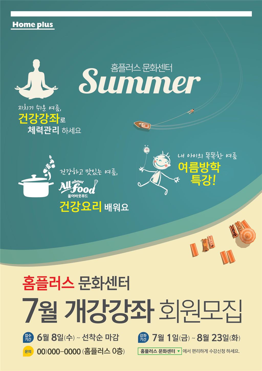[아시아경제 조호윤 기자]홈플러스 문화센터가 7월 개강 여름학기 회원 모집을 시작했다. 홈플러스는 전국 125개 문화센터에서 여름학기 7월 개강 강좌 회원을 모집한다고 8일 밝혔다. 이번 여름학기 강좌는 ‘볼&밴드 활용 맞춤 근력 강화 운동’, ‘연예인 몸매 관리법 발레 스트레칭’, ‘체형 교정 중심 파워요가’, ‘차밍, 밸리댄스’ 포함 2000여 개가 준비됐다. 단 선착순 마감이다. 특히 뱃살은 빼고 S라인을 살리는 건강 프로젝트의 일환으로 월드컵점 등 10개점에는 ‘온리(ONLY) 앨리스 성인발레’도 선보인다.정서우 홈플러스 문화센터 강좌기획 과장은 “홈플러스 단독으로 마련한 앨리스 발레는 성인 초보자들도 일상에서 쉽게 따라 할 수 있는 동작 위주로 프로그램을 재구성해, 발레에 대한 부담은 줄이면서 자세교정 및 근력강화 효과를 통해 여름철 슬림하고 예쁜 몸매를 가꾸는 데 도움을 줄 수 있도록 마련했다”고 설명했다. 이 외에도 홈플러스 문화센터는 홈플러스 상품을 활용한 건강 요리 비법을 소개하는 강좌도 마련했다. 대표 강좌는 ‘콜라보 클래스’, ‘베비언스와 함께하는 베이비 마사지’, ‘죽염을 활용한 잇몸 관리법’, ‘코웨이 물 한 잔으로 지키는 건강’ 등이다.한편 홈플러스 문화센터 여름학기 추가 접수 및 강좌 관련 정보는 각 점포 문화센터 안내데스크 및 홈페이지(//school.homeplus.co.kr)를 통해 확인할 수 있다.조호윤 기자 hodoo@asiae.co.kr<ⓒ세계를 보는 창 경제를 보는 눈, 아시아경제(www.asiae.co.kr) 무단전재 배포금지>