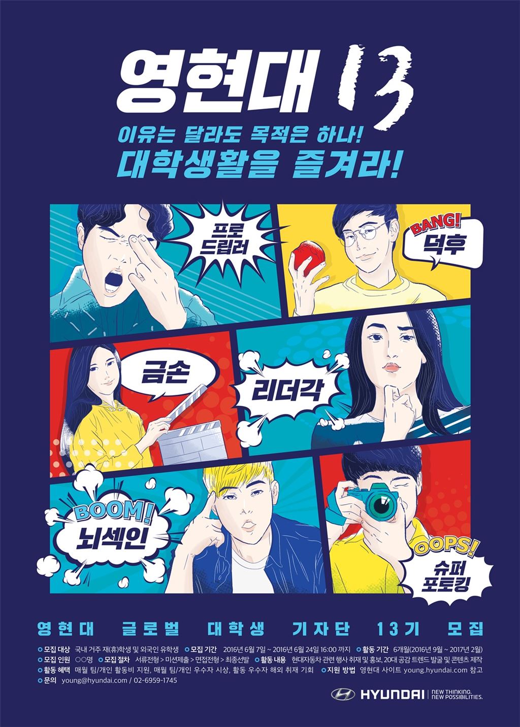 24일까지 현대자동차 영현대 사이트에서 신청현대차 주최 다양한 행사, 자동차 산업, 20대 트렌드 관련 콘텐츠 제작활동 우수자에게 현대차 글로벌 사업장과 해외 문화 취재 기회 제공