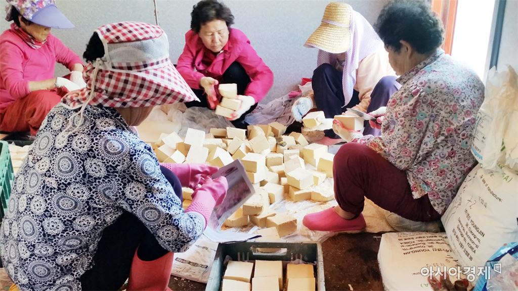 진도군 고군면 지수리의 할머니, 할아버지들은 경로당에서 친환경 비누 만들기 작업이 한창이다.