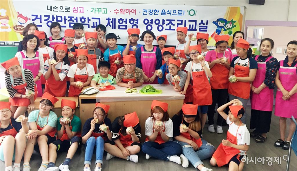 [아시아경제 노해섭 기자]광주 남구(구청장 최영호)는 8일 월산초교 6학년 학생들을 대상으로 직접 가꾼 텃밭 채소를 활용해 샌드위치를 만드는 ‘건강만점학교 체험형 영양조리교실’을 운영했다. 노해섭 기자 nogary@<ⓒ세계를 보는 창 경제를 보는 눈, 아시아경제(www.asiae.co.kr) 무단전재 배포금지>