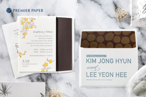 [아시아경제 조강욱 기자] 바른컴퍼니의 고급 청첩장 브랜드 '프리미어페이퍼(www.premierpaper.co.kr)'는 레터프레스 청첩장 2종을 출시했다고 9일 밝혔다. 역사상 가장 오래된 인쇄 기법인 '레터프레스 프린팅(활판 인쇄)'은 활판에 원하는 글자나 이미지를 조각한 후 돌출되는 부분에 잉크를 바르고 종이 한 장 한 장에 압력을 가해 찍어내는 방식이다. 만들어내는 과정은 힘들지만 그만큼 독특하고 고급스러운 결과물을 얻을 수 있다는 것이 장점으로 여전히 미국, 유럽 등에서는 오랜 전통의 레터프레스 카드를 선호한다.프리미어페이퍼 관계자는 "레터프레스 프린팅은 수작업의 정성으로 완성되는 아날로그 감성이 매력"이라며 "한 번 받고 마는 일회성 카드가 아니라 두고두고 간직하고 싶은 선물용, 소장용 카드로 고급 레터프레스 청첩장을 선보이게 됐다"고 말했다. 프리미어페이퍼 레터프레스 청첩장 신제품 2종 BH6030, BH6097은 레터프레스 특유의 자연스러운 잉크 색감과 올록볼록한 질감에서 따뜻한 아날로그 감성이 묻어난다. BH6030은 종이 결이 살아 있는 한지 느낌의 도톰한 용지에 생동감 있는 노란색 꽃나무로 포인트를 주었다. BH6097은 신랑 신부 이름을 이용한 블루 컬러 타이포그래피(글자를 중심으로 한 디자인)로 모던한 느낌을 부각시켰다. 두 제품 모두 봉투 안쪽에 브라운 컬러 종이를 덧대어 작은 부분까지 고급스러움이 느껴진다. 가격은 각 장당 1357원(400매 구매 기준)으로 출시됐다. 한편 프리미어페이퍼는 6월 한 달 동안 다양한 이벤트를 진행 중이다. 오는 17일까지 여름 테마 청첩장 10~15% 세일을 실시하며, 30일까지 청첩장 400매 이상 구매 고객에게 고급 청첩장 보관 앨범 '메멘토북'을 증정한다. 자세한 내용은 프리미어페이퍼 사이트(www.premierpaper.co.kr)에서 확인할 수 있다. 조강욱 기자 jomarok@asiae.co.kr<ⓒ세계를 보는 창 경제를 보는 눈, 아시아경제(www.asiae.co.kr) 무단전재 배포금지>조강욱 기자 jomarok@asiae.co.kr<ⓒ아시아 대표 석간 '아시아경제' (www.newsva.co.kr) 무단전재 배포금지>