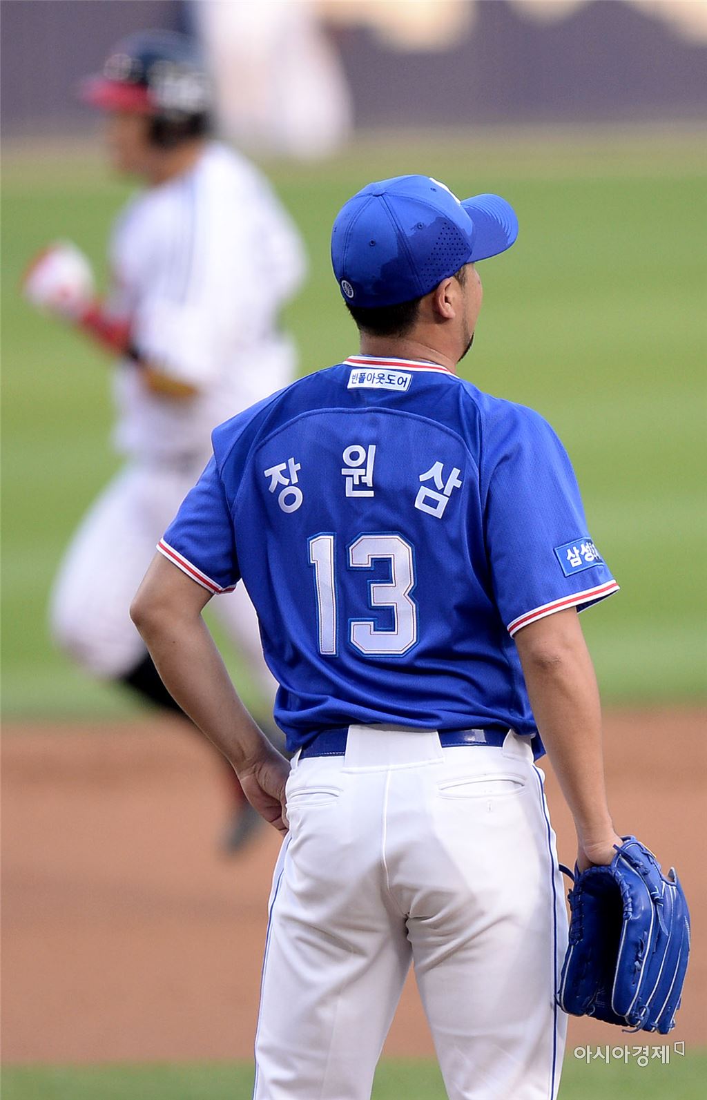 [잠실=아시아경제 김현민 기자] 프로야구 삼성 라이온즈와 LG 트윈스의 2016 KBO리그 경기가 9일 잠실구장에서 열렸다. 삼성 선발 장원삼이 2회말 2사에서 LG 유강남에게 좌월 선제 솔로 홈런을 허용하고 있다. 김현민 기자 kimhyun81@asiae.co.kr<ⓒ세계를 보는 창 경제를 보는 눈, 아시아경제(www.asiae.co.kr) 무단전재 배포금지>