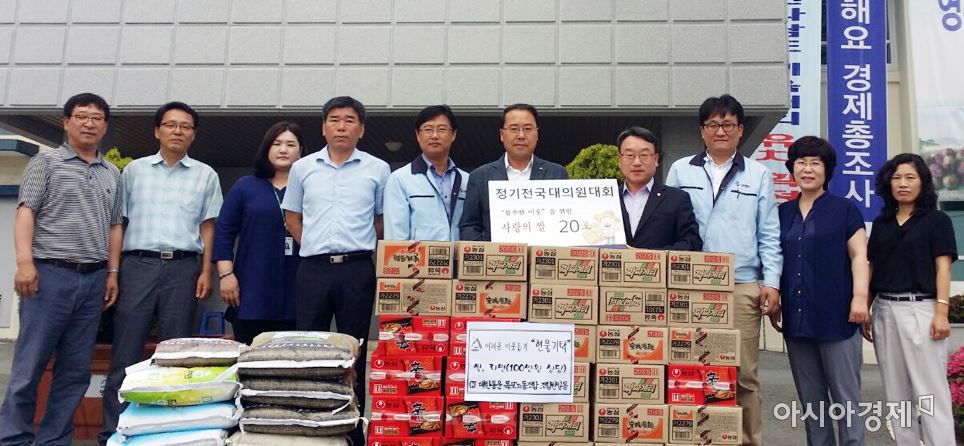 [아시아경제 노해섭 기자]사단법인 목포항만물류협회(회장 신민철)는 9일 영암군 삼호읍 지역아동센터에 100만원 상당의 사랑의 기부물품을 전달해 지역사회 에 귀감이 되었다. 이번 기부물품은 CJ대한통운 노동조합 대의원대회를 목포에서 개최 한 후 화환대신 기부 받은 물품을 소외계층 아동을 돌보고 있는 삼호읍 지역아동센터 8개소에 사랑의 물품(쌀, 라면)을 전달하게 되었다. 또한, CJ그룹사 'CJ도너스캠프'아동지원 프로그램 일환으로 2013년부터 지역아동센터에 선물과 물품지원 활동을 지속적으로 실시 해 오고 있다. 신민철 회장은 “지역에서 가장 생활이 어려운 소년·소녀가장 꿈나무들에게 힘과 용기를 주기 위해 전달하게 되었다”며 “앞으로도 소외계층에 많은 관심을 갖고 더불어 살아가는 지역사회에 작은 도움이 되도록 노력 하겠다”고 말했다. 노해섭 기자 nogary@<ⓒ세계를 보는 창 경제를 보는 눈, 아시아경제(www.asiae.co.kr) 무단전재 배포금지>