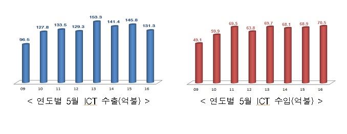 연도별 5월 ICT 수출입 현황(사진=미래부)
