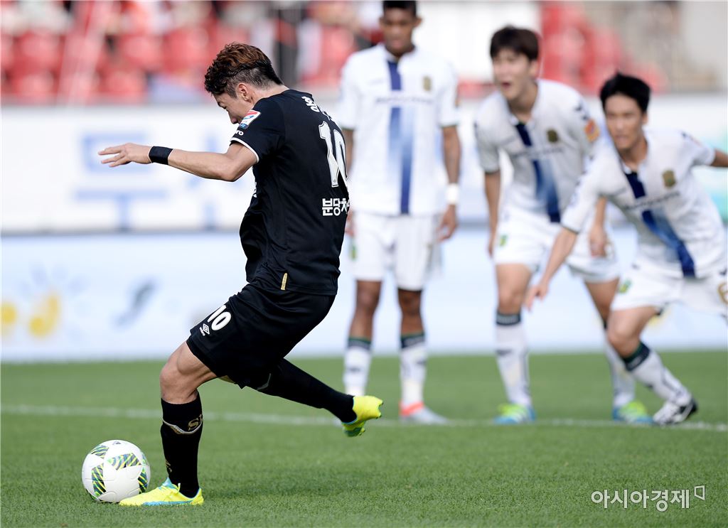 [성남=아시아경제 김현민 기자] 프로축구 성남 FC와 전북 현대의 2016 K리그 클래식 경기가 12일 성남 탄천종합운동장에서 열렸다. 후반 성남 황의조가 페널티킥을 하고 있다. 황의조의 PK는 전북 권순태의 선방에 막혔다.김현민 기자 kimhyun81@asiae.co.kr<ⓒ세계를 보는 창 경제를 보는 눈, 아시아경제(www.asiae.co.kr) 무단전재 배포금지>