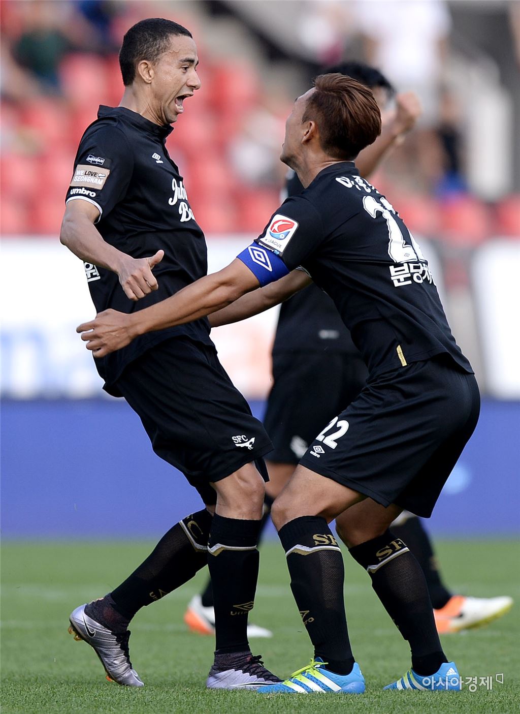 [성남=아시아경제 김현민 기자] 프로축구 성남 FC와 전북 현대의 2016 K리그 클래식 경기가 12일 성남 탄천종합운동장에서 열렸다. 성남 티아고가 후반 프리킥 선제골을 성공시킨 뒤 동료들과 기뻐하고 있다. 김현민 기자 kimhyun81@asiae.co.kr<ⓒ세계를 보는 창 경제를 보는 눈, 아시아경제(www.asiae.co.kr) 무단전재 배포금지>