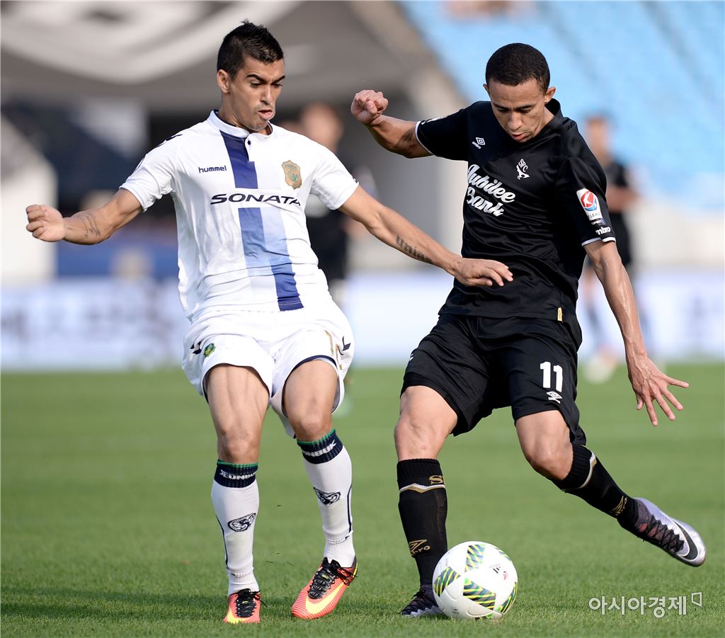 [성남=아시아경제 김현민 기자] 프로축구 성남 FC와 전북 현대의 2016 K리그 클래식 경기가 12일 성남 탄천종합운동장에서 열렸다. 성남 티아고가 전북 레오나르도이 수비를 뚫고 공격하고 있다. 김현민 기자 kimhyun81@asiae.co.kr<ⓒ세계를 보는 창 경제를 보는 눈, 아시아경제(www.asiae.co.kr) 무단전재 배포금지>