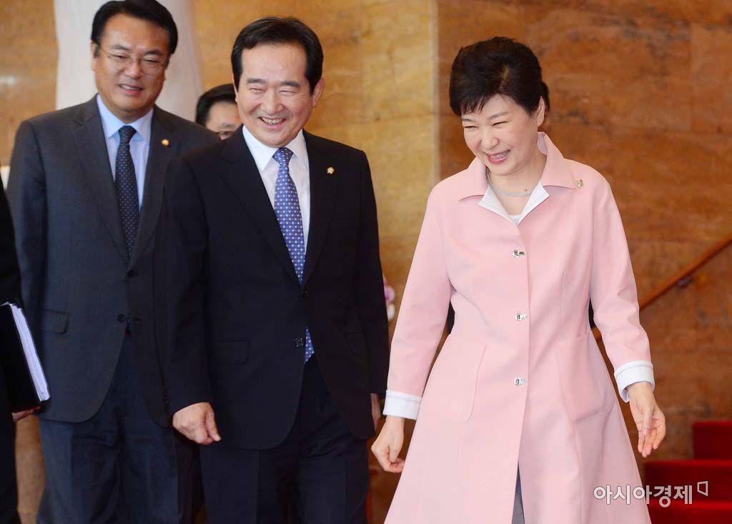 [아시아경제 ] 박근혜 대통령이 13일 서울 여의도 국회 본회의장에서 열린 20대 국회 개원식에서 시정연설을 마친 후 정세균 국회의장과 함께 본청을 나서고 있다./국회사진기자단 <ⓒ세계를 보는 창 경제를 보는 눈, 아시아경제(www.asiae.co.kr) 무단전재 배포금지>