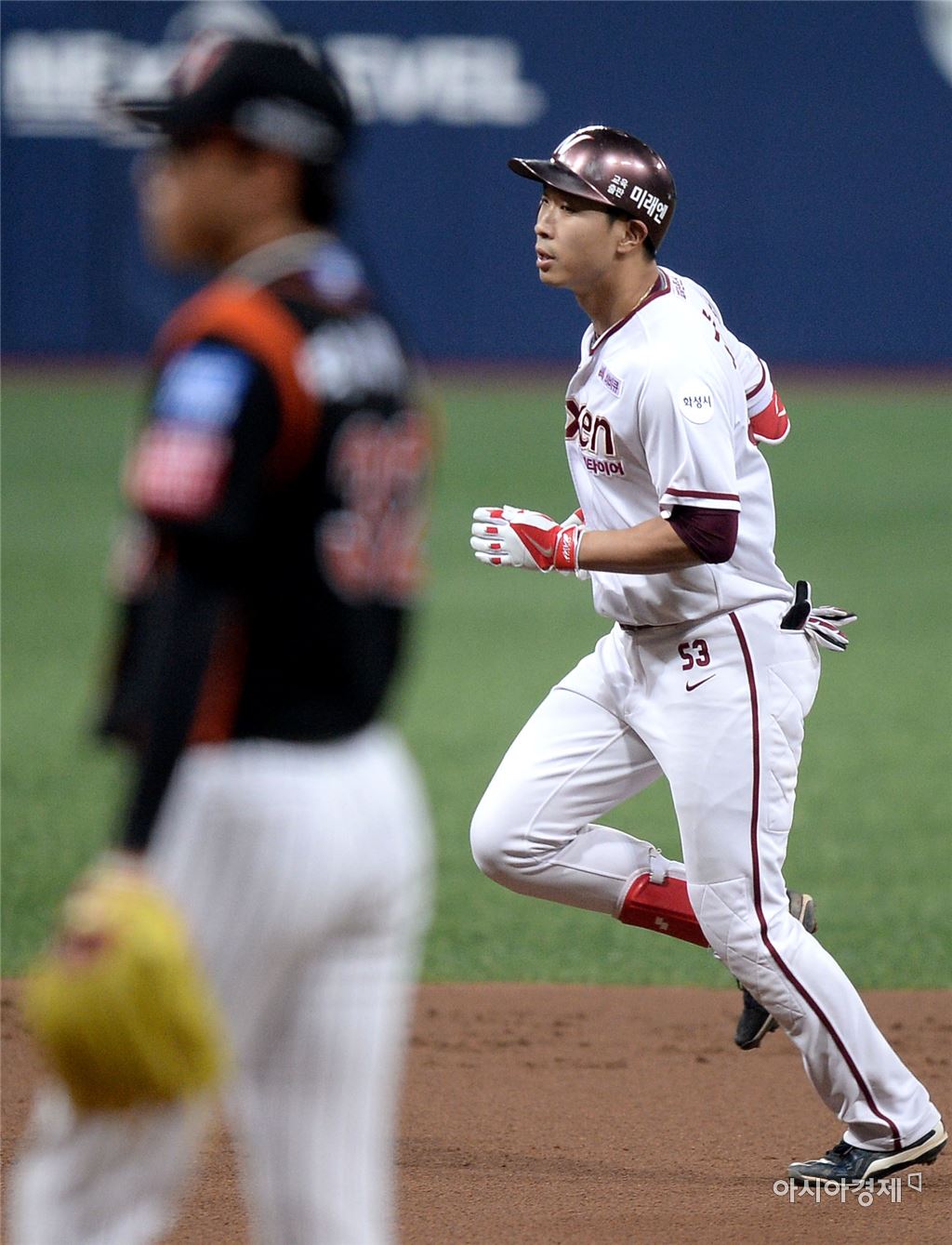 [고척돔=아시아경제 김현민 기자] 프로야구 롯데 자이언츠와 넥센 히어로즈의 2016 KBO리그 경기가 14일 서울 고척돔에서 열렸다. 1회말 1사에서 넥센 고종욱이 롯데 선발 박세웅을 상대로 우월 선제 솔로 홈런을 치고 베이스를 돌고 있다. 김현민 기자 kimhyun81@asiae.co.kr<ⓒ세계를 보는 창 경제를 보는 눈, 아시아경제(www.asiae.co.kr) 무단전재 배포금지>