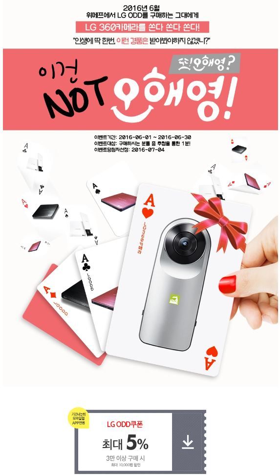 [아시아경제 조강욱 기자] 소셜커머스 위메프(대표 박은상)는 오는 30일까지 LG전자의 외장 ODD 제품을 모은 'LG ODD 기획전'를 열고 LG전자의 외장 ODD 신제품들을 판매한다고 15일 밝혔다.이번 'LG ODD 기획전'을 통해 모두 3가지의 외장 ODD 신제품을 선보인다. PC, 노트북, 태블릿PC, 스마트폰에서 레코딩이 가능한 KP65NW70모델이 위메프가 4만5000원에 판매된다. 200g의 가벼운 무게로 휴대가 간편한 것이 특징이다. 함께 선보이는 AP60NB60 모델과 GP50NB40 모델은 LG전자의 스테디셀러로 PC, 노트북뿐만 아니라 스마트TV와 연결하여 DVD플레이어로도 활용 가능하다. 구매 시 고급 파우치를 증정하며, 각각 위메프가 4만3000원과 3만7000원에 판매된다.6월 구매 고객 중 추첨을 통해 1명에게 29만원 상당의 LG 360카메라를 증정하는 이벤트를 진행한다. 자세한 내용은 기획전 페이지에서 확인 가능하다.또 17일까지 3만원 이상 구매 시 구매금액의 5%를 즉시할인 받을 수 있는 APP 전용 쿠폰을 지급한다. 조강욱 기자 jomarok@asiae.co.kr<ⓒ세계를 보는 창 경제를 보는 눈, 아시아경제(www.asiae.co.kr) 무단전재 배포금지>