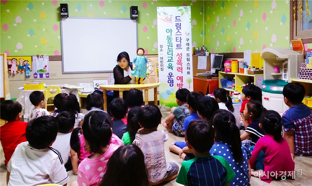 [아시아경제 이진택 기자]구례군 드림스타트에서는 지난 15일 최근 사회적 약자를 대상으로 하는 성관련 범죄를 예방하기 위해 관내 7개 어린이집 150명을 대상으로 굿네이버스 전문강사를 초빙하여 학대·(성)폭력예방 및 아동권리교육을 실시했다. 이날 교육은 아동의 눈높이에 맞춰 인형을 활용하여 신체관련 정확한 명칭 사용으로 개념정립과 여러 위험 상황에 대한 각각의 대처 방법 등 아이들의 참여와 관심을 이끄는 내용으로 이루어졌다. 드림스타트 관계자는 “아동들이 눈높이에 맞는 교육을 통하여 올바른 성가치관 확립과 건강한 성의식을 함양하기 바란다”면서 또한, “사회적 약자를 대상으로 하는 심각한 수준의 성폭력에 우리 아동들이 노출되지 않도록 사회구성원 모두 노력해야 할 것”이라고 말했다. 한편, 아동의 학대·(성)폭력 예방을 위해 관내 어린이집 및 드림스타트 아동을 대상으로 이러한 프로그램을 매년 실시할 계획이다. 이진택 기자 <ⓒ세계를 보는 창 경제를 보는 눈, 아시아경제(www.asiae.co.kr) 무단전재 배포금지>