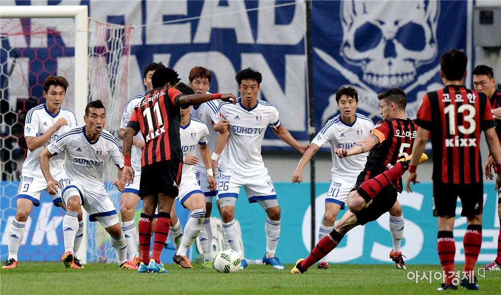 [상암=아시아경제 김현민 기자] 프로축구 FC 서울과 수원 삼성의 2016 K리그 클래식 경기가 18일 서울월드컵경기장장에서 열렸다. 서울 오스마르가 수원 수비벽을 뚫고 프리킥을 하고 있다. 김현민 기자 kimhyun81@asiae.co.kr<ⓒ세계를 보는 창 경제를 보는 눈, 아시아경제(www.asiae.co.kr) 무단전재 배포금지>