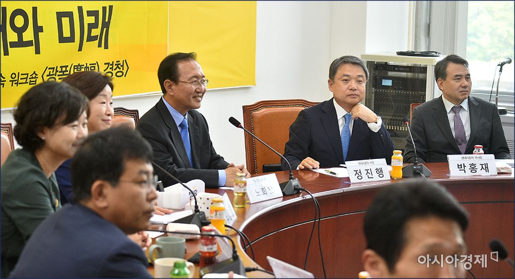 [아시아경제 윤동주 기자] 심상정 정의당 대표와 노회찬 원내대표 등 정의당 의원들이 21일 서울 여의도 국회에서 정진행 현대차 사장과 '한국 제조업의 현재와 미래'라는 주제로 토론을 벌이고 있다. 윤동주 기자 doso7@asiae.co.kr<ⓒ세계를 보는 창 경제를 보는 눈, 아시아경제(www.asiae.co.kr) 무단전재 배포금지>