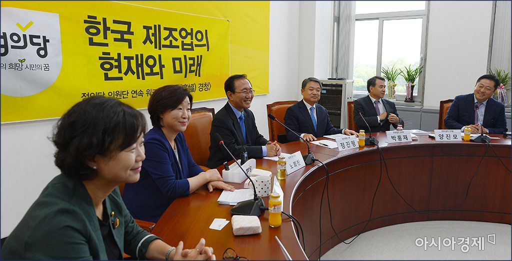 [아시아경제 윤동주 기자] 심상정 정의당 대표와 노회찬 원내대표 등 정의당 의원들이 21일 서울 여의도 국회에서 정진행 현대차 사장과 '한국 제조업의 현재와 미래'라는 주제로 토론을 벌이고 있다.윤동주 기자 doso7@asiae.co.kr<ⓒ세계를 보는 창 경제를 보는 눈, 아시아경제(www.asiae.co.kr) 무단전재 배포금지>
