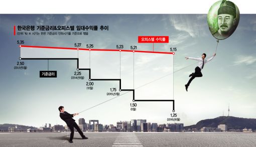 [아시아경제 조은임 기자]제로금리 시대, 수익형 부동산의 전성시대가 열렸다. 저금리에 투자처를 찾지 못해 시중에 떠도는 2300여조원이 수익형 부동산을 향해 깜박이를 켠 모습이다. 더군다나 부동산 투자자금을 조달하기 위한 대출금리도 하락하면서 수익형 부동산에 대한 선호도는 그 어느때보다 높다. ◆기준금리 1.25%…수익성 부동산 전성시대=한국은행이 이달 1년만에 추가금리 인하를 단행하면서 기준금리는 1.25%까지 떨어졌다. 수익형 부동산으로 얻을 수 있는 임대수익률도 예전에 비해서는 많이 하락한 상황. 부동산114에 따르면 올해 1분기 오피스텔 수익률 5.64%로 5%대를 유지했지만 전 분기(5.67%)에 비해선 0.03%포인트 하락했다. 하지만 2014년2분기에만 해도 2.5% 수준이었던 기준금리가 반토막나면서 체감 수익률은 오히려 높아졌다. 더욱이 이번에는 시장에서 동결을 예상했던 터라 선반영되지 못한 CD, 금융채 연동 대출금리에 이어 1~2개월 뒤면 코픽스 금리까지 떨어질 것으로 예상된다. 신정섭 신한은행 부동산팀장은 "정기예금 금리와 수익형 부동산의 금리차가 더욱 벌어지고 있다"며 "오피스텔의 임대수익률은 떨어지고 있지만 그마저도 선호도가 점점 높아지는 중"이라고 설명했다. 현재 2303조원에 달하는 시중의 유동자금의 흐름 역시 주목해야 할 요소다. 증가율이 상당폭으로 유지되면서 수익률이 높은 상품으로 몰려들 여지가 상당하다는 게 시장의 분석이다. 한국은행이 발표한 자료에 따르면 지난해 말 기준 통화량(M2) 평균잔액은 2182조9000억원으로 2014년(2009조5000억원)보다 8.6% 늘었다. 이는 5년만의 최대 증가폭으로 지난 4월 기준 M2는 2303억3000억원을 기록했다. 올들어 증가율이 다소 줄긴했지만 여전히 7%대를 유지하고 있다. 현금과 요구불예금, 수시입출식 저축성 예금을 합한 M2는 흔히 유동자금을 의미하는 지표로 쓰인다.김규정 NH투자증권 연구위원은 "시중에 유동성이 많아 상반기에도 목좋은 곳의 상가분양 경쟁률이 치솟는 등 수익형 부동산에 돈이 몰리고 있었다"며 "시중금리까지 더 떨어지면 앞으로도 월세를 받는 부동산에 투자가 늘어날 수 있다"고 전했다. ◆수익형 부동산 대표하는 빅3에 몰린다= 소액으로 잘만하면 높은 수익률을 올릴 수 있는 오피스텔은 가장 대중적이고 전통적인 수익형 부동산으로 꼽힌다. 지난해 분양이 늘어나면서 오피스텔 시장에 유입된 자금이 10년만에 최대치인 10조8656억원에 달했다. 부동산114에 따르면 오피스텔 실거래가를 취합한 결과 거래가 총액은 5조2104억원, 분양가 총액은 5조6552억원으로 조사됐다.하지만 가격은 오르고 임대료는 그만큼 오르지 않아 오피스텔의 임대수익률은 예전만 못하다는 게 시장의 평가다. 올해 1분기 임대수익률은 5.64%로 5%대를 유지했지만 전 분기(5.67%)에 비해 0.03%포인트 하락했다. 공급과잉도 수익률 하락을 부추기는 원인으로 지목된다. 지난해 분양한 오피스텔 222개 단지 가운데 3월 현재까지 분양계약을 완료하지 못한 단지는 총 94곳인 것으로 집계됐다. 전체의 42%에 해당하는 물량이다.전문가들은 역세권과 도심 그리고 배후수요가 받쳐주는 곳이라면 여전히 승산이 있다고 조언했다. 일시적으로 공급이 많은 곳은 차후에 공실의 우려가 커질 수 있으니 좀 더 신중히 투자해야 한다고 전했다. 박합수 KB국민은행 도곡스타PB센터 수석부동산전문위원은 "오피스텔의 전용률이 크게 하락하면서 인기가 예전만은 못하지만 특정지역의 공급과잉 문제를 제외하고서 수익률 5% 이상이 확보되는 곳이라면 여전히 투자가치가 있다"고 전했다. ◆점포겸용 단독주택 등 택지에도 관심= 상가는 오피스텔보다 수익률이 높아 선호도가 늘고 있다. 국토교통부에 따르면 지난해 기준 상업용 부동산 연간 투자 수익률은 오피스텔 5.9%, 중대형 매장용상가 6.2%, 소규모 매장용상가 5.9%, 집합 매장용상가 7.3%를 기록했다. 주요 도심에 위치한 상가의 경우 임대료 상승폭도 상당히 높다. 명동ㆍ을지로의 경우 3.3㎡당 월세가 2008년 11만6744원에서 올해 23만1312원으로 2배넘게 뛰었다. 같은 기간 이태원ㆍ경리단길은 6만3662원에서 11만9232원, 홍대는 8만원에서 11만원으로 올랐다. 분양상가는 아파트 분양이 호황을 입으면서 덩달아 인기다. 특히 수천가구가 넘는 대단지를 배후에 둔 상가의 경우 완판되기도 했다. 최근에 분양되는 아파트 상가는 사업 초기 단계부터 업종 구성을 철저히 해 업종이 겹치지 않아 수요 확보에도 유리하다. 지난 4월 송도국제업무단지에 분양된 '롯데몰 송도 캐슬파크'의 경우 점포 84개가 하루만에 완판됐는데, 2040실의 오피스텔을 독점으로 흡수한다는 점이 주효했다. '점포겸용 단독주택' 용지 최근 가장 인기인 수익형부동산이다. 내 집 아래 점포를 두고 있어 주거문제와 함께 임대수익도 올릴 수 있다는 점이 인기요인이다. 영종하늘도시에서는 지난주 한 필지에 9204명이 몰리는 등 투자자들의 확보경쟁이 치열하게 펼쳐졌다. 지난 3월 강원도 원주기업도시에서도 9395대 1, 부산 명지국제도시에서는 6234대 1 등의 경쟁률을 기록했다. 이밖에 자산가들 사이에서는 이른바 '꼬마빌딩'이 인기다. 20억~30억원 가량을 4~5층