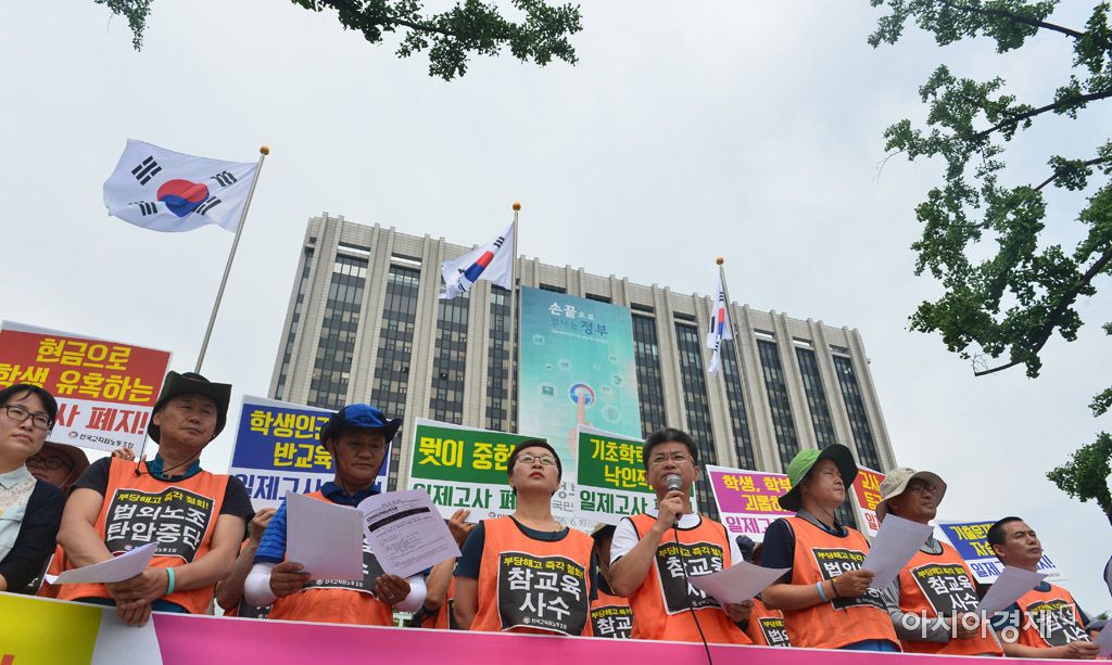 [아시아경제 문호남 인턴기자] 학업성취도 평가가 치러진 21일 오전 전국교직원노동조합이 서울 세종로 정부서울청사 앞에서 '학업성취도 평가 폐지 촉구' 기자회견을 하고 있다.문호남 인턴기자 munonam@asiae.co.kr<ⓒ세계를 보는 창 경제를 보는 눈, 아시아경제(www.asiae.co.kr) 무단전재 배포금지>