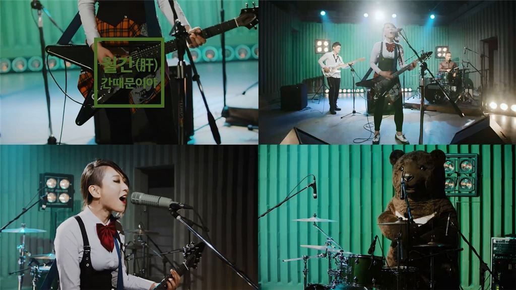 대웅제약(대표 이종욱)이 이달 인디밴드 '아즈버스'와 함께 발표한 락버전의 '간 때문이야' 뮤직비디오 모습.