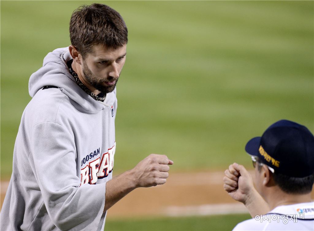 [아시아경제 김현민 기자] 프로야구 kt 위즈와 두산 베어스의 2016 KBO리그 경기가 21일 잠실구장에서 열렸다. 두산 니퍼트가 팀의 12-1 승리를 확정한 뒤 김태형 감독과 기쁨을 나누고 있다. 니퍼트는 선발로 나서 6이닝 퍼펙트 피칭으로 시즌 10승째를 기록했다.김현민 기자 kimhyun81@asiae.co.kr<ⓒ세계를 보는 창 경제를 보는 눈, 아시아경제(www.asiae.co.kr) 무단전재 배포금지>