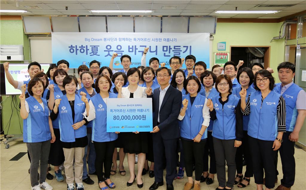 [아시아경제 강구귀 기자] 신한생명은 지난 21일 설계사로 구성된 봉사단체 빅드림 봉사단(Big Dream 봉사단)이 독거 노인을 위한 ‘시원한 여름나기’ 봉사활동을 전국에서 동시에 실시했다.이번 봉사활동은 보건복지부 산하 독거노인종합지원센터에 후원금 8000만원을 전달한 후 전국 47개 노인복지관과 연계해 진행했다. 빅드림 봉사단에 소속된 1000여명의 설계사가 참여했다. 이들 봉사단은 노인들이 무더운 여름을 잘 보내실 수 있도록 쿨스카프·수박·냉면·삼계탕 등을 담은 ‘하하하(夏) 웃음 바구니’를 제작해 전달했다. 신한생명 관계자는 “보험업의 기본정신인 상부상조를 바탕으로 홀로 사는 어르신께 조금이라도 도움이 되고자 이번 활동을 준비했다”며 “앞으로도 소외된 이웃에게 힘이 될 수 있는 사회공헌활동을 지속적으로 추진하겠다”고 말했다.강구귀 기자 nine@asiae.co.kr<ⓒ세계를 보는 창 경제를 보는 눈, 아시아경제(www.asiae.co.kr) 무단전재 배포금지>