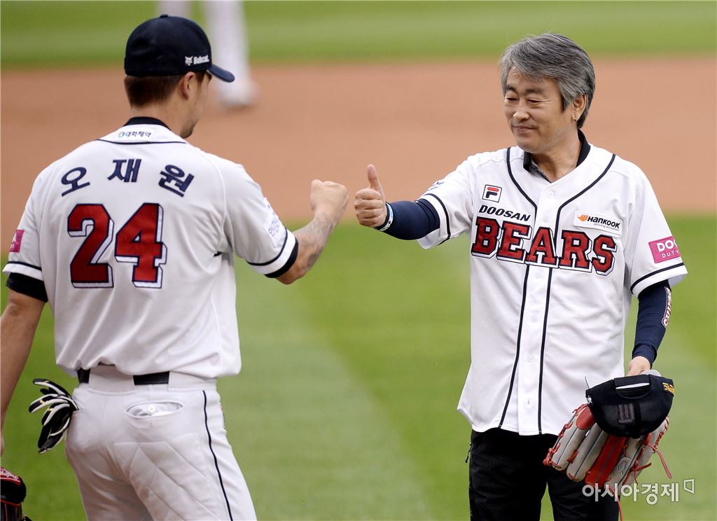 [아시아경제 김현민 기자]프로야구 kt 위즈와 두산 베어스의 2016 KBO리그 경기가 23일 잠실구장에서 열렸다. 경기에 앞서 1000경기 출장 기록을 세운 두산 오재원이 시구자로 나선 아버지 오병현 씨와 하이파이브하고 있다. 김현민 기자 kimhyun81@asiae.co.kr<ⓒ세계를 보는 창 경제를 보는 눈, 아시아경제(www.asiae.co.kr) 무단전재 배포금지>