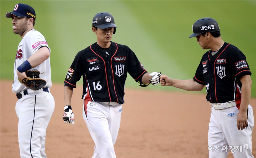 [아시아경제 김현민 기자]프로야구 kt 위즈와 두산 베어스의 2016 KBO리그 경기가 23일 잠실구장에서 열렸다. 2회초 1사 만루에서 kt 박기혁이 선취 2타점 적시타를 치고 김민재 코치와 하이파이브하고 있다. 김현민 기자 kimhyun81@asiae.co.kr<ⓒ세계를 보는 창 경제를 보는 눈, 아시아경제(www.asiae.co.kr) 무단전재 배포금지>
