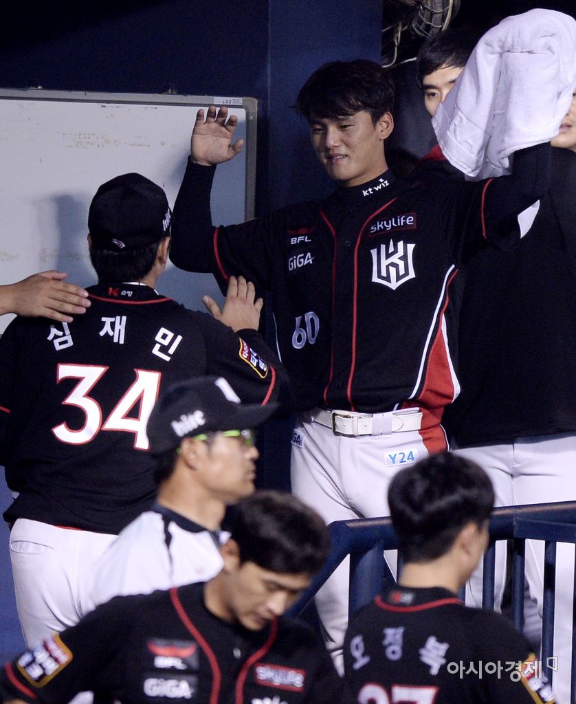 [아시아경제 김현민 기자]프로야구 kt 위즈와 두산 베어스의 2016 KBO리그 경기가 23일 잠실구장에서 열렸다. 6회말 2사 1,3루의 위기에서 강판된 kt 선발 주권이 무실점으로 위기를 막은 심재민과 포옹하고 있다. 김현민 기자 kimhyun81@asiae.co.kr<ⓒ세계를 보는 창 경제를 보는 눈, 아시아경제(www.asiae.co.kr) 무단전재 배포금지>