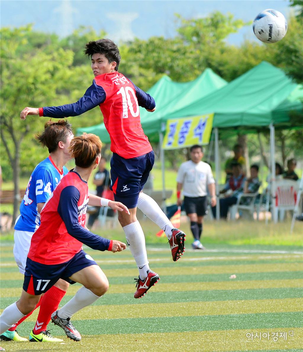 [아시아경제 노해섭 기자]한국대학축구연맹 주최 KBS N 제12회 1·2 학년 대학축구대회가 23일 영광홍농 한마음 구장에서 남부대와 군장대의 경기가 펼쳐졌다. 군장대 정호영 선수가 헤딩슛을 하고 있다.노해섭 기자 nogary@ <ⓒ세계를 보는 창 경제를 보는 눈, 아시아경제(www.asiae.co.kr) 무단전재 배포금지>
