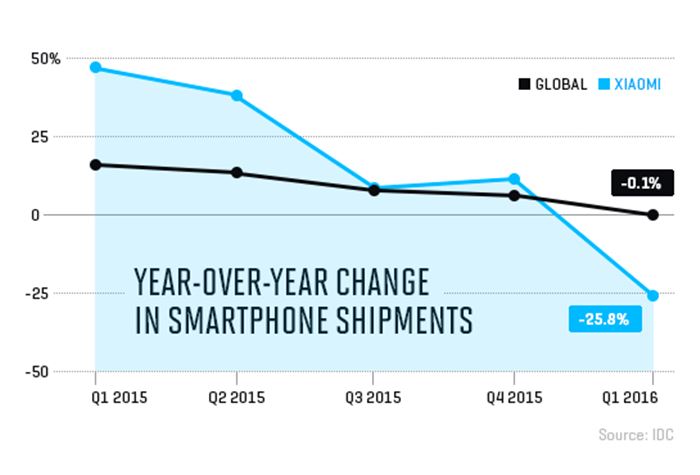 샤오미와 전 세계 스마트폰 시장 추이(사진=포츈)