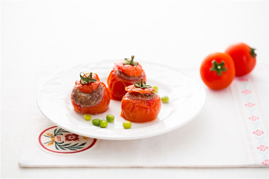 재료토마토 (큰 것 2개 또는 작은 것 4개). 다진 쇠고기 80g, 굵게 다진 양파 1/4개, 다진 마늘 1, 달걀 1/2개, 빵가루 1, 말린 바질, 소금·후춧가루 약간씩만들기▶ 요리 시간 40분1. 토마토는 윗부분을 도려내어 뚜껑을 만들고 속은 파낸다.
