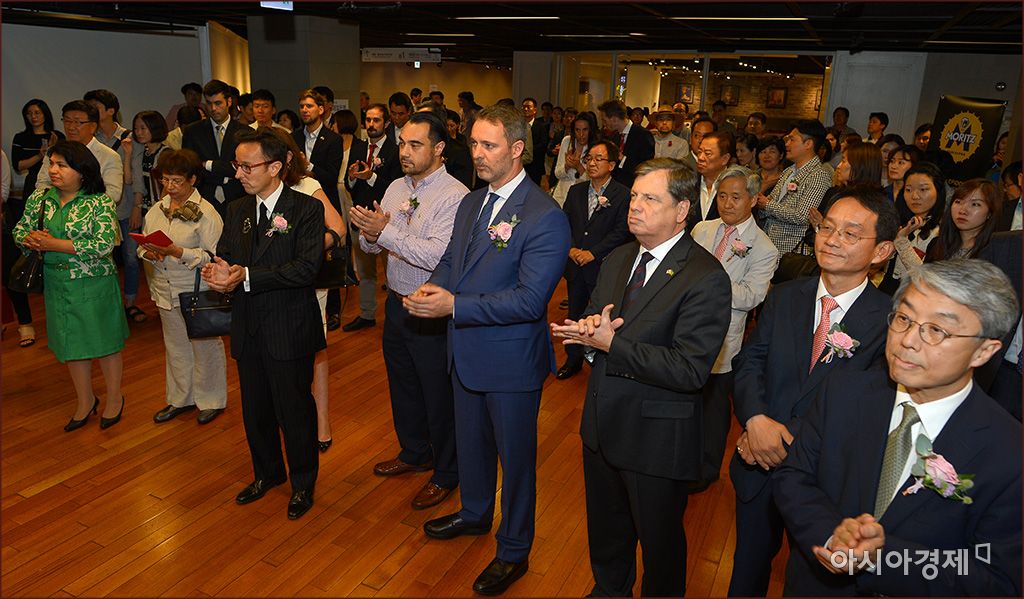 [아시아경제 윤동주 기자] 27일 서울 종로구 세종문화회관 미술관에서 '꿈을 그린 화가 '호안미로' 특별전'이 개막했다. 개막전에 참석한 이세정 아시아경제 사장, 이승엽 세종문화회관 사장, 주안 푸넷 미로 식세션 미로 대표(미로 손자), 프란시스코 코파도 마요르카 호안 미로 재단장, 필라르 바오스 마요르카 호안 미로 재단 큐레이터 등 주요 참석자들이 박수를 치고 있다.윤동주 기자 doso7@asiae.co.kr<ⓒ세계를 보는 창 경제를 보는 눈, 아시아경제(www.asiae.co.kr) 무단전재 배포금지>