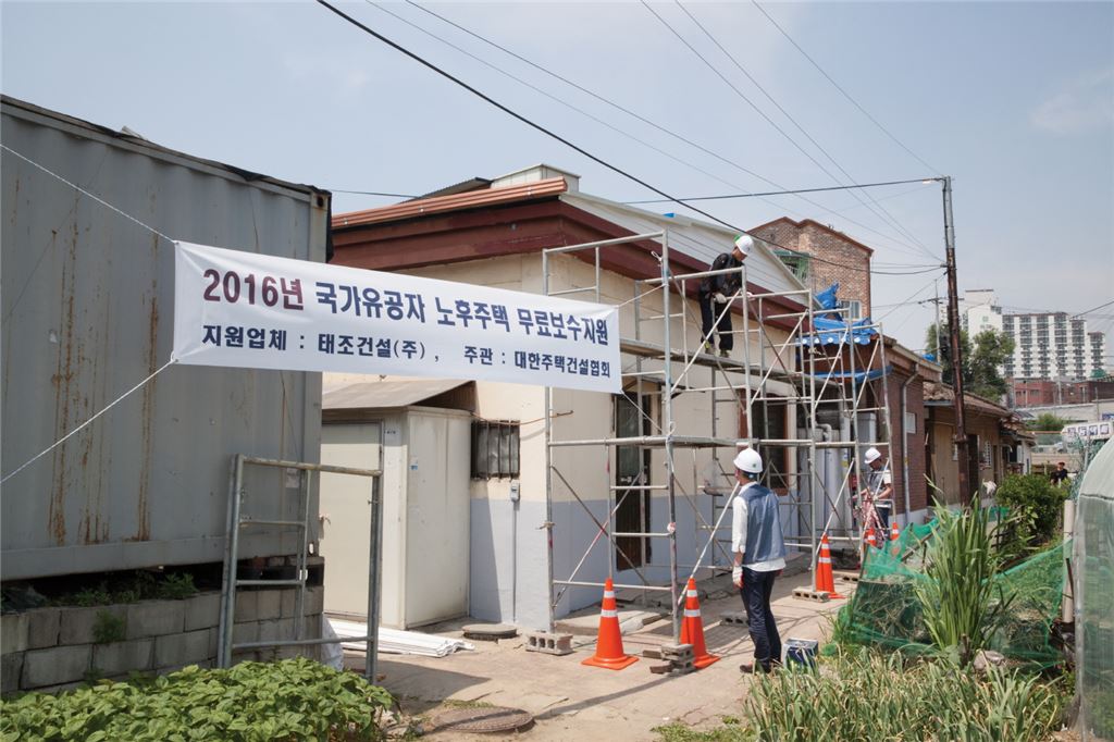 [아시아경제 주상돈 기자] 대한주택건설협회(주건협)와 주택도시보증공사(HUG) 28일 오후 여의도 HUG빌딩에서 '2016년 국가유공자 노후주택보수 및 임차자금지원 기념식'을 연다.이번 행사는 23주년을 맞아 진행된 '2016년도 국가유공자 주거여건개선사업'의 성공적 완료를 기념하기 위해 마련됐다. 행사에서는 국가유공자들의 노후주택을 무료로 보수해준 74개 주택업체에 대통령표창·국무총리표창 등 정부포상과 국토교통부장관 표창, 국가보훈처장 표창·감사패 등이 수여되며, HUG에서 총 4억원의 주택임차자금을 무주택국가유공자들에게 무상으로 지원한다.대통령표창은 ▲㈜제일종합건설 ▲명남종합건설㈜이 수상하며, ▲㈜대광이엔씨와 ▲태조건설㈜ 등은 국무총리표창을 받게 된다. 아울러 국토부장관 표창은 ▲㈜태왕이앤씨와 ▲㈜리젠시빌주택 ▲㈜보광종합건설 ▲㈜세지건설 ▲청도건설㈜ ▲미래주택건설㈜ ▲㈜명문주택 등 7개사, 국가보훈처장 표창은 ▲미진이엔시㈜ 등 8개사가 각각 수상한다. 이밖에 ▲원일종합건설㈜ 등 54개사에는 국가보훈처장감사패가 수여된다.주건협과 HUG는 사회공헌활동의 일환으로 기업이윤의 사회환원차원에서 생활형편이 어려운 국가유공자를 돕기 위해 지난 1994년 이후 매년 국가유공자 주거여건개선사업을 추진하고 있다.올해는 74개 참여 주택업체들이 국가유공자 노후주택 1동당 1000여만원의 비용을 들여 총 85동을 무료로 보수했다. HUG는 무주택국가유공자 82가구에 가구당 400만∼500만원씩 총 4억원의 주택임차자금을 지원한다. 김문경 주건협회장은 "열악한 주거환경에서 생활하는 국가유공자들의 주거여건을 개선하는데 기여해 주신데 대해 깊은 감사를 표한다"며 "앞으로 보다 많은 국가유공자분들의 주거환경을 개선해 드리기 위해 HUG와 함께 사업을 더욱 확대해 지속적으로 추진할 계획"이라고 말했다.주상돈 기자 don@asiae.co.kr<ⓒ세계를 보는 창 경제를 보는 눈, 아시아경제(www.asiae.co.kr) 무단전재 배포금지>