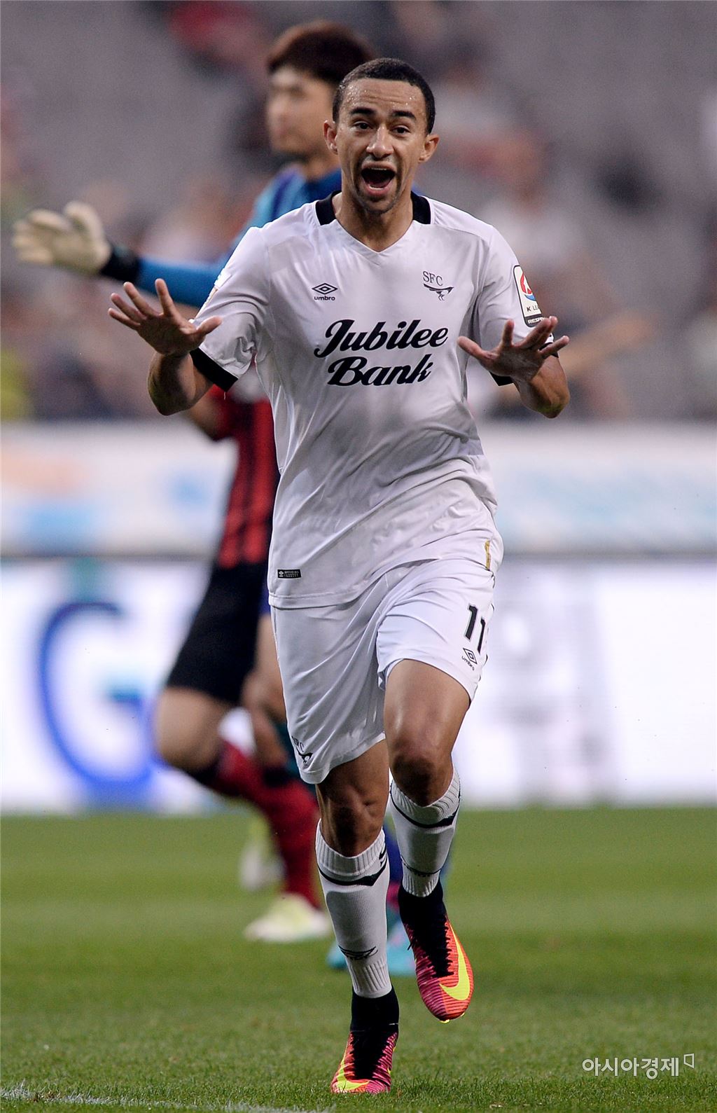 [아시아경제 김현민 기자] 프로축구 FC서울과 성남FC의 2016 K리그 클래식 경기가 29일 서울월드컵경기장에서 열렸다. 성남 티아고가 전반 동점골을 넣은 뒤 세리머니하고 있다. 김현민 기자 kimhyun81@asiae.co.kr<ⓒ세계를 보는 창 경제를 보는 눈, 아시아경제(www.asiae.co.kr) 무단전재 배포금지>