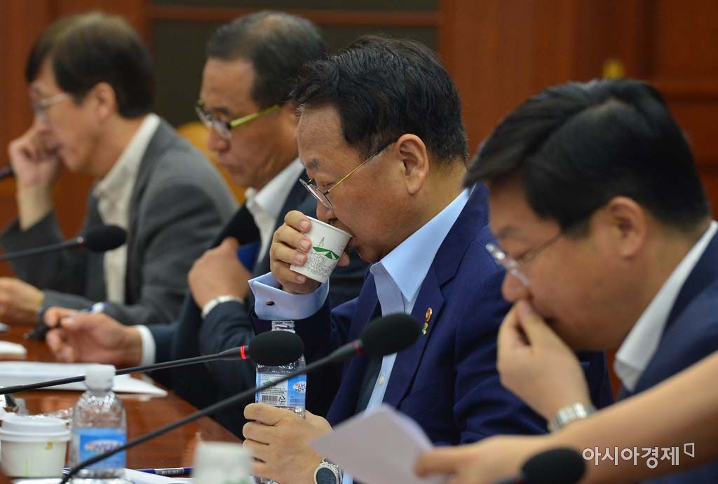 [아시아경제 백소아 기자] 30일 서울 세종로 정부서울청사에서 열린 산업경쟁력강화관계장관회의에서 유일호 경제부총리가 물을 마시고 있다.백소아 기자 sharp2046@asiae.co.kr<ⓒ세계를 보는 창 경제를 보는 눈, 아시아경제(www.asiae.co.kr) 무단전재 배포금지>