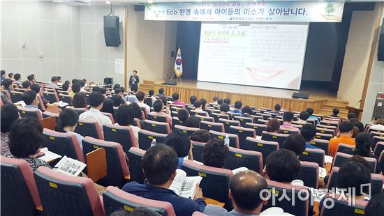 " 2016. 환경교육 담당교원 연찬회 개최"[아시아경제 노해섭 기자]전남도교육청(교육감 장만채)은 지난 27일 동부권(청암대)을 시작으로 서부권은 28일(전남여성프라자), 중부권은 29일(국립광주과학관) 3일 동안 초·중·고 환경교육 담당교원 760여명을 대상으로 연찬회를 가졌다. 이번 연찬회는 환경교육 교육과정 실제 적용을 위한 교사의 지도역량을 강화하고 지속가능발전교육에 대한 이해도를 높이기 위해 마련됐다. 3권역으로 나누어 진행된 이번 연찬회는 장만채 전라남도교육감 민선 2기 공약사업인 Eco-School 시범조성 사업과 연계한 환경교육의 일반화란 점에서 의미가 크다. 주요 내용으로 2016. 환경업무 추진 방향, Eco-School 운영의 실제, 최근 지구촌 환경교육의 방향 등 일선학교에서 요구되는 일련의 환경업무 전반을 이해할 수 있도록 안내했다. 환경교육을 위한 교육과정 편성·운영, 환경교육과 관련한 다양한 행사와 교원의 능력을 향상시킬 수 있는 연수 기회 등 학교교육을 담당하면서 어렵고 이해하기 힘들었던 부분을 이해할 수 있도록 운영됐다. 연찬회에 참석한 환경교육 담당교원들은 “환경교육의 방향과 중요성을 인식하게 되었고 많은 자신감을 갖게 되었다”며 “환경교육의 중요성을 인식한 만큼 최선을 다 하겠다”고 각오를 밝혔다. 박선미 미래인재과장은 “환경교육은 교육의 의미를 넘어 생활이다”고 강조하면서 “미래 우리 후손에게 온전한 환경을 전해주어야 할 책임이 있다”고 말했다.노해섭 기자 nogary@<ⓒ세계를 보는 창 경제를 보는 눈, 아시아경제(www.asiae.co.kr) 무단전재 배포금지>