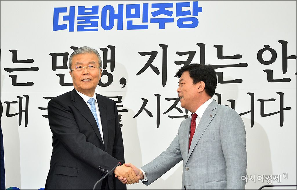 [아시아경제 윤동주 기자] 김종인 더불어민주당 대표가 1일 서울 여의도 국회에서 박성택 중기중앙회장과 면담을 갖기에 앞서 인사를 나누고 있다.윤동주 기자 doso7@asiae.co.kr<ⓒ세계를 보는 창 경제를 보는 눈, 아시아경제(www.asiae.co.kr) 무단전재 배포금지>
