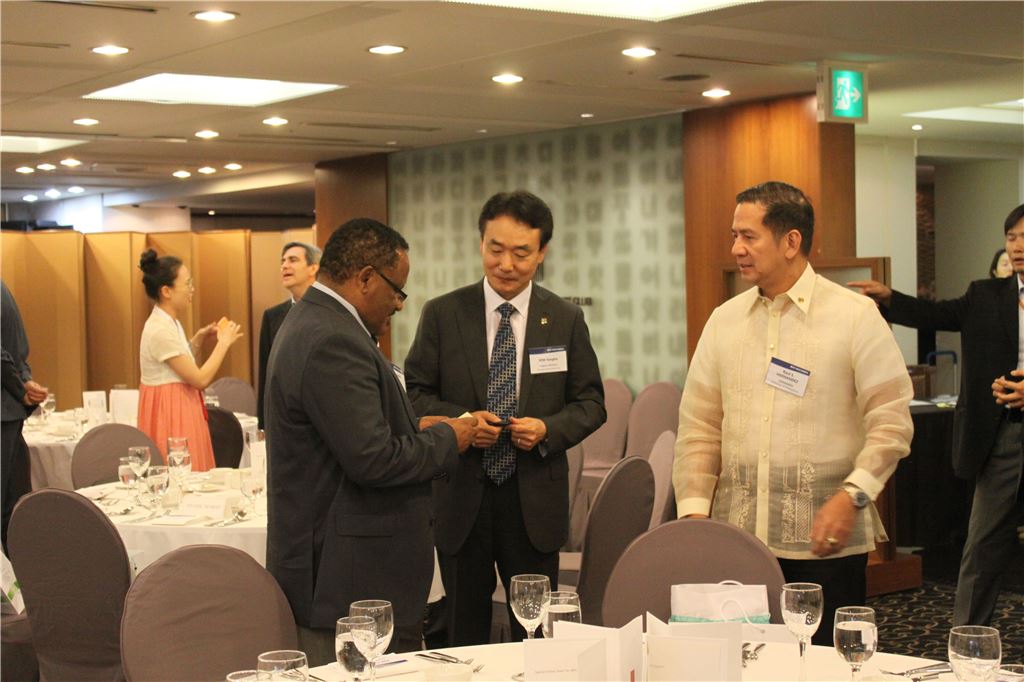 산림청 김용하 차장(왼쪽 두 번째)이 에티오피아 특명전권 쉬페로 자소 주한 대사(왼쪽 첫 번째)와 필리핀 라울 허넨데즈(왼쪽 세 번째) 주한 필리핀 대사가 대화 나누고 있다. 산림청 제공