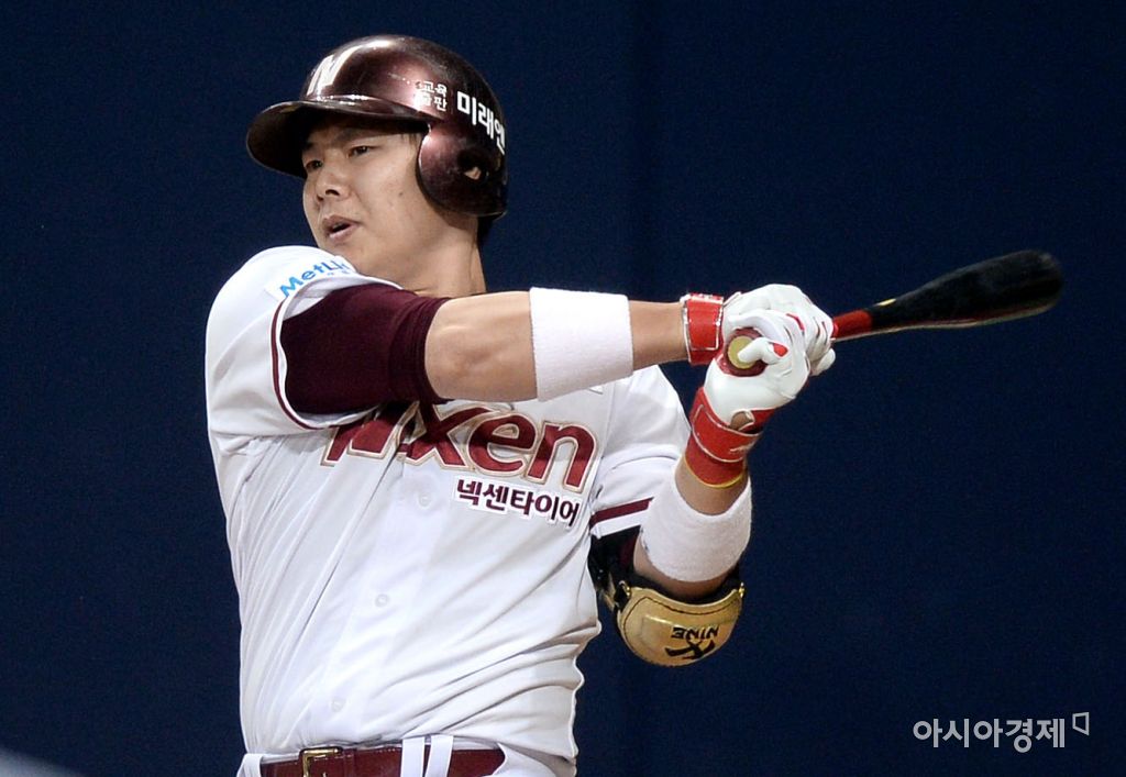 [아시아경제 김현민 기자] 프로야구 KIA 타이거즈와 넥센 히어로즈의 2016 KBO리그 경기가 1일 서울 고척스카이돔에서 열렸다. 3회말 무사 1,2루에서 넥센 윤석민이 추가 1타점 적시타를 치고 있다. 김현민 기자 kimhyun81@asiae.co.kr<ⓒ세계를 보는 창 경제를 보는 눈, 아시아경제(www.asiae.co.kr) 무단전재 배포금지>