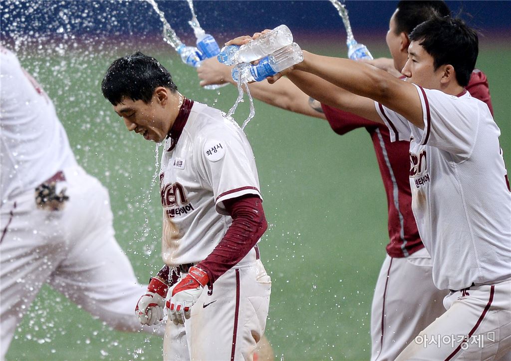 [아시아경제 김현민 기자] 프로야구 KIA 타이거즈와 넥센 히어로즈의 2016 KBO리그 경기가 3일 서울 고척스카이돔에서 열렸다. 연장 11회말 무사 만루에서 넥센 박정음이 끝내기 안타를 치고 동료들과 기쁨을 나누고 있다. 김현민 기자 kimhyun81@asiae.co.kr<ⓒ세계를 보는 창 경제를 보는 눈, 아시아경제(www.asiae.co.kr) 무단전재 배포금지>