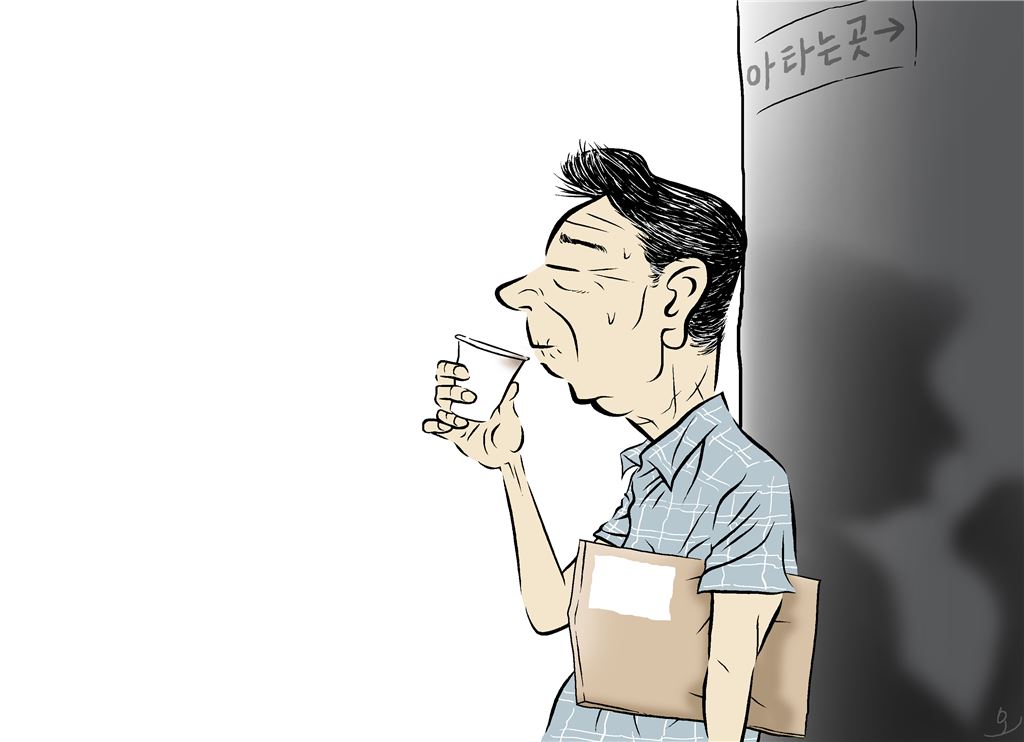 [아시아경제 정동훈 기자] 지하철 택배원의 하루는 고단하다. 걷는 게 일이고 나르는 게 돈이 된다. 하루 3~4건의 주문을 처리하면 2만 걸음(약 14㎞)을 걷는다. 하지만 주문을 기다리는 시간에 앉아 쉴 수 있는 곳은 마땅치 않다. 이동이 편한 지하철 환승역에서 택배원들은 기대어 쉴 곳을 찾는다.신도림역 3번 출구에 있는 무료카페 '동네북'과 맞은편 분수대는 대표적인 택배원들의 쉼터다. 카페 동네북은 서울시가 운영하는 소통공간이다. 기증받은 도서가 비치돼 있고 영화도 무료로 상영한다. 택배원들은 이곳의 널따란 테이블에 앉아 신문이나 책을 보며 주문을 기다린다. 맞은편 분수대는 집에서 준비한 도시락이나 편의점에서 산 음식으로 점심식사를 하는 택배원들이 많다. 신도림역은 주문이 많은 지하철 1·2호선 환승역이라 이동이 쉽고 앉아 쉴 곳도 있다.오후 1시30분 신도림역 분수대. 이곳에 걸터앉은 지하철 택배원 김성식(70) 씨와 만났다. 그는 연금만으로는 생활이 힘들어 택배원이 됐다. 택배로 번 돈은 월세와 공과금을 내는데 쓴다.김 씨는 분수대에서 늦은 점심을 해결할 생각이었다. 오전에 서류 두 개를 전달하고 화분 배송도 했다는 그는 주먹밥이 든 밀폐용기를 꺼냈다. 가방에서 참기름 냄새가 진동했다. 뚜껑을 신통치 않게 닫았는지, 배송 시간에 쫓겨 뛰는 도중에 열렸는지 알 수 없단다.신도림역 3번 출구 분수대