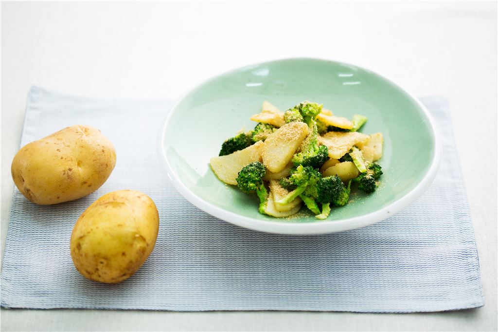 재료(2인분)감자 1개, 브로콜리 1/3개, 미강가루(또는 들깨가루) 2, 소금·후춧가루 약간씩, 식용유 적당량만들기▶ 요리 시간 25분1. 감자는 납작하게 썰고 브로콜리는 작은 송이로 썬다.<br />