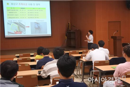 "비상구 안전관리 중점지도 및 소방안전교육 실시"[아시아경제 노해섭 기자]광주남부소방서(서장 이성연)는 4일 오후 2시부터 다중이용업소 관계자에게 비상구 안전관리 특별교육 및 개정법령 안내교육 등을 실시했다. 다중이용업소 소방안전교육은 '다중이용업소의 안전관리에 관한 특별법'에 따라 다중이용업소 영업주와 종업원은 소방안전교육을 2년에 1회 이상 반드시 이수해야 한다. 이날 교육은 다중이용업소 대상 안전교육 등 사고방지 시책을 실시함에도 불구하고, 최근 부산 소재 노래방에서 비상구 추락사고와 같은 사고가 발생함에 따라 비상구 안전관리 관련 교육에 중점을 두고 소방안전교육을 실시했다. 김길순 예방홍보담당은“소방관련 법령과 소방시설의 강화만으로 안전이 확보되는 것이 아니므로, 관계자들이 정기교육을 통해 경각심을 높이고 업소 내 소방시설을 재점검하는 계기가 되기 바란다”고 전했다. 노해섭 기자 nogary@<ⓒ세계를 보는 창 경제를 보는 눈, 아시아경제(www.asiae.co.kr) 무단전재 배포금지>
