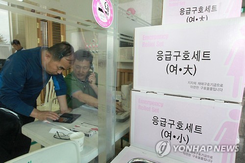 이재민들에게 지급디는 응급구호세트. 사진제공=연합뉴스