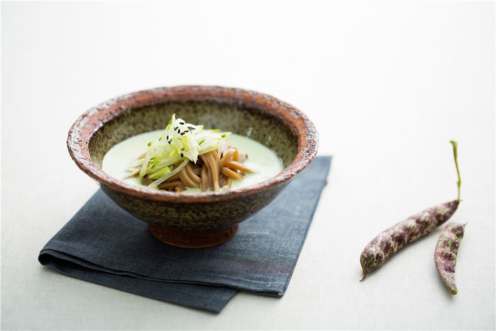 5. 그릇에 도토리묵을 담고 차가운 콩물을 부은 다음 오이를 얹고 소금을 곁들인다.<br /> (Tip 도토리묵대신 우무나 소면을 사용해도 좋다.)<br />