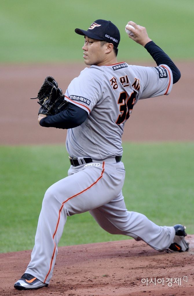 [문학=아시아경제 김현민 기자] 프로야구 한화 이글스와 SK 와이번스의 2016 KBO리그 경기가 6일 인천 문학구장에서 열렸다. 한화 선발투수 장민재가 역투하고 있다. 김현민 기자 kimhyun81@asiae.co.kr<ⓒ세계를 보는 창 경제를 보는 눈, 아시아경제(www.asiae.co.kr) 무단전재 배포금지>