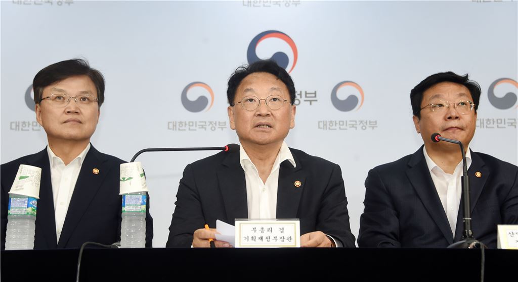 유일호 부총리 겸 기획재정부 장관(가운데)이 7일 정부서울청사에서 열린 제10차 무역투자진흥회의 결과 합동브리핑에서 모두발언을 하고 있다.