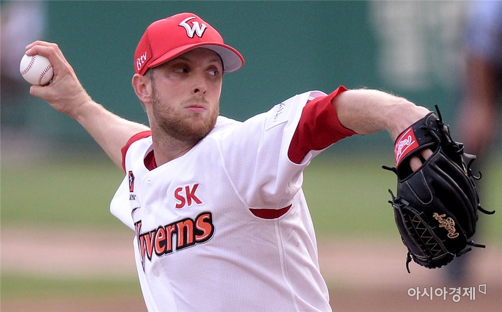 [인천=아시아경제 김현민 기자] 프로야구 한화 이글스와 SK 와이번스의 2016 KBO리그 경기가 7일 인천 SK행복드림구장에서 열렸다. SK 켈리가 역투하고 하고 있다. 김현민 기자 kimhyun81@asiae.co.kr<ⓒ세계를 보는 창 경제를 보는 눈, 아시아경제(www.asiae.co.kr) 무단전재 배포금지>